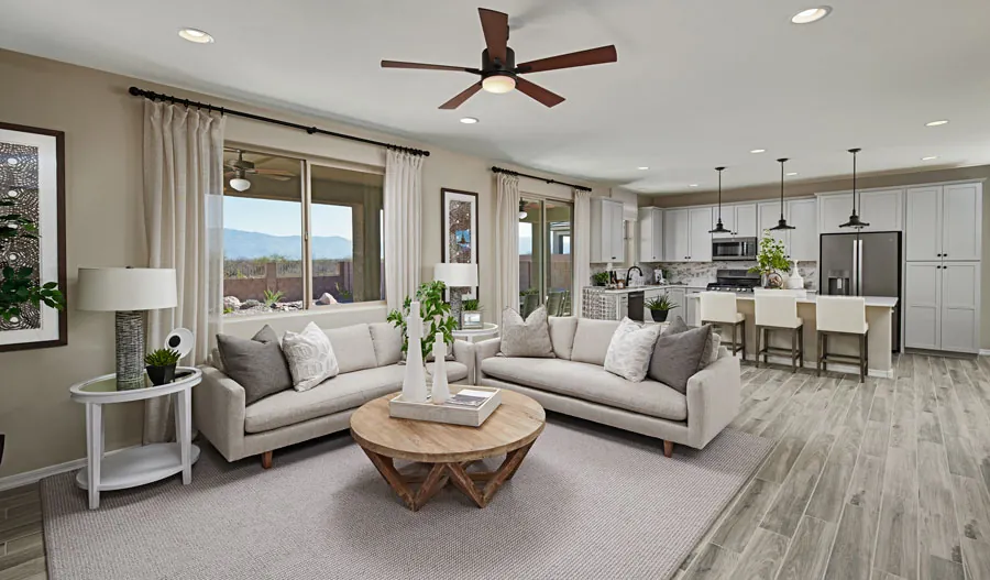 A covered entry; a smartly planned kitchen showcasing a center island, a built-in pantry, and an open dining area; an impressive great room; a stunning primary suite boasting a spacious walk-in closet and a private bath; a convenient laundry; two secondary bedrooms with a shared hall bath; a guest suite offering a bedroom, an attached bath, and a living room with a wet bar; and an inviting covered patio. this could be your dream home!