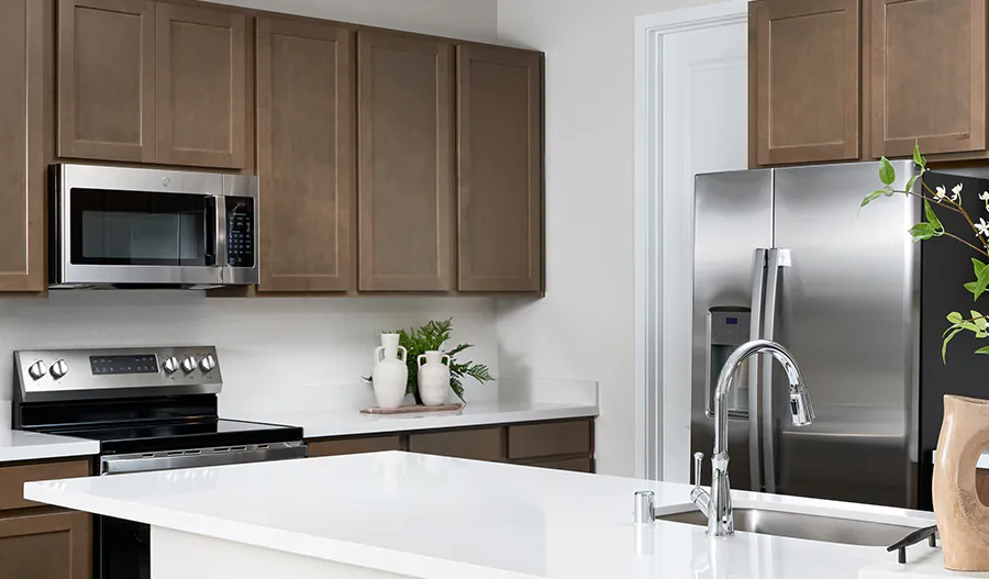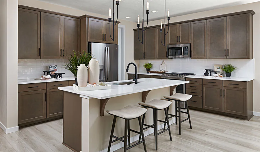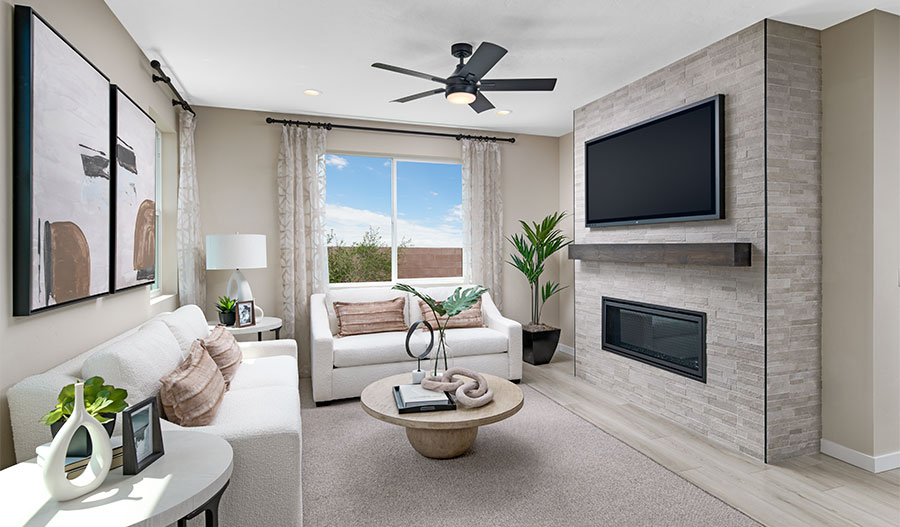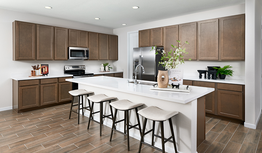 A welcoming covered entry; a secluded study; a well-appointed kitchen offering stainless-steel appliances, a generous island and a walk-in pantry; an adjacent dining area; a spacious great room overlooking a relaxing covered patio with center-meet doors; a centrally located laundry; two secondary bedrooms, including one with a private bath; and an elegant primary suite boasting a private bath with double sinks and an immense walk-in closet. airy 9' main-floor ceilings, quartz countertops and luxury vinyl plank flooring are also included. visit today!