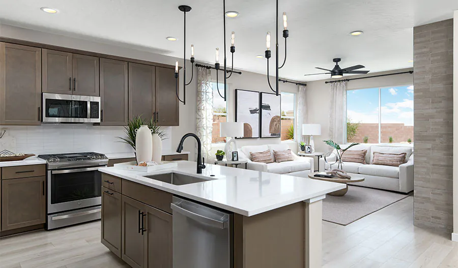 An inviting covered entry; a spacious great room; an open dining area; a well-appointed kitchen offering quartz countertops, a walk-in pantry and a center island; a tranquil covered patio; a lavish primary suite showcasing a generous walk-in closet and a private bath with double sinks; a convenient laundry with a sink and cabinets; an rv garage and a 2-car garage with a service door. this home also offers vinyl plank flooring in select rooms. visit today!
