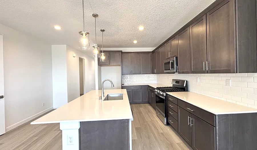 A welcoming covered entry; a secluded study; a well-appointed kitchen offering stainless-steel appliances, a generous island and a walk-in pantry; an adjacent dining area; a spacious great room overlooking a relaxing covered patio with center-meet doors; a centrally located laundry; two secondary bedrooms, including one with a private bath; and an elegant primary suite boasting a private bath with double sinks and an immense walk-in closet. airy 9' main-floor ceilings, quartz countertops and luxury vinyl plank flooring are also included. visit today!